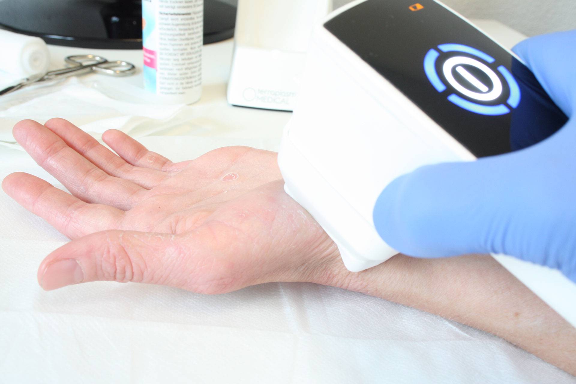 In order to develop a practical product, terraplasma medical was founded in 2016. In 2019, plasma care® received market approval. The handy and mobile medical device is used for the treatment of wounds, especially chronic wounds. Cold plasma treatment does not damage human tissue, reduces the use of antibiotics or steroids and does not cause allergic side effects or pain. The plasma care® product series inactivates bacteria including multi-resistant pathogens, viruses, fungi and spores. At the same time, it activates the healing process. More than 30,000 successful wound treatments (as of 2023) have already been carried out with the mobile plasma care®.