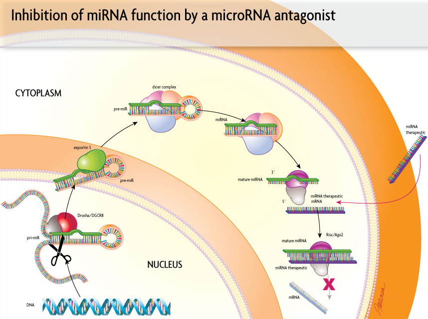 Inhibition of the miRNA function through a microRNA antagonist (© Alnylam) -