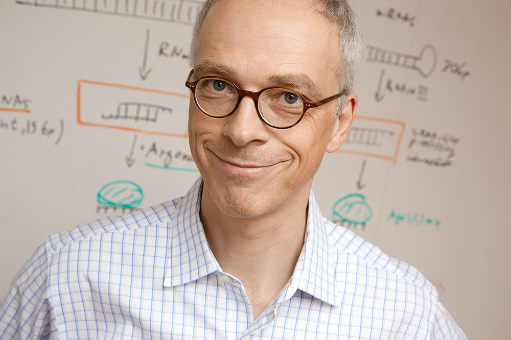 RNA interference (RNAi) was first observed in plants and some invertebrate animals (e.g. fruit flies). However, Thomas Tuschl and his colleagues from the Max Planck Institute for Biophysical Chemistry in Göttingen were the first to succeed in establishing the functioning of RNAi in mammalian cells as well. In the RNAi procedure developed by Thomas Tuschl, synthetically manufactured RNA strands are inserted into a cell. These bind themselves to complementary messenger RNAs (mRNAs), which are then removed or destroyed through a complex cellular mechanism. This reduces or prevents the implementation of genes in proteins. Due to RNAi, it is possible to specifically deactivate individual genes so that the information contained in the gene is not passed on and the protein concerned is not produced. The discovery of this “switch” represents an extremely promising approach to the treatment of a very wide range of diseases, some of which are currently still not accessible to treatment by drugs. Consequently, RNAi therapeutics constitutes a significant new class of drugs. In future, they could be used for the treatment of viral diseases, metabolic diseases and cancers, and could be of similar importance as monoclonal antibodies already today.