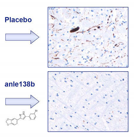 In 2008, teams of scientists led by Armin Giese of the University of Munich and Christian Griesinger of the Max Planck Institute for Biophysical Chemistry in Göttingen developed a substance called anle138b, which has been shown to delay nerve cell damage in mice to an unprecedented degree.